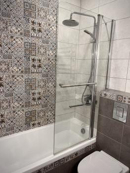 Сан.узел: ванна, тропический душ, стеклянная перегородка, стиральная машина.
