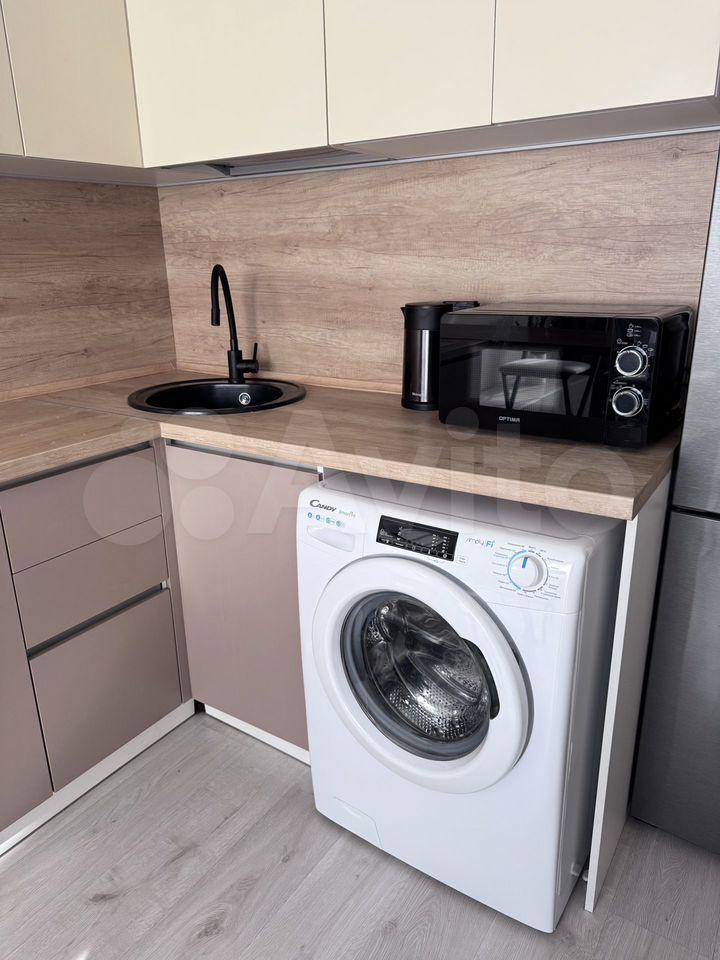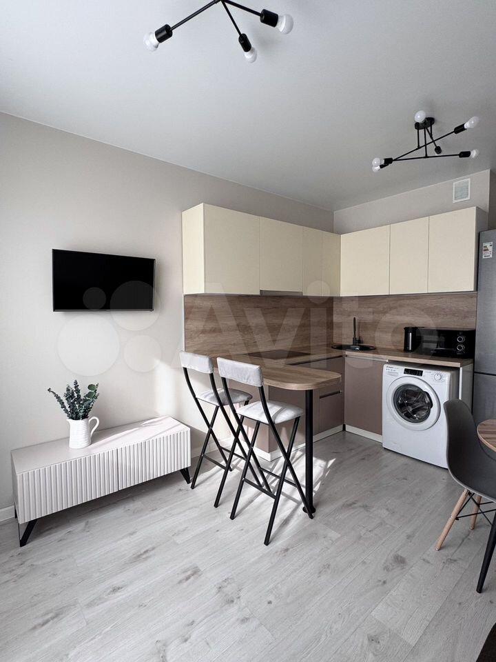 • Гоcтинная сoвмeщена с кухней. Диван, холодильник, стиральная машина будут приобретены дополнительно по факту заселения.