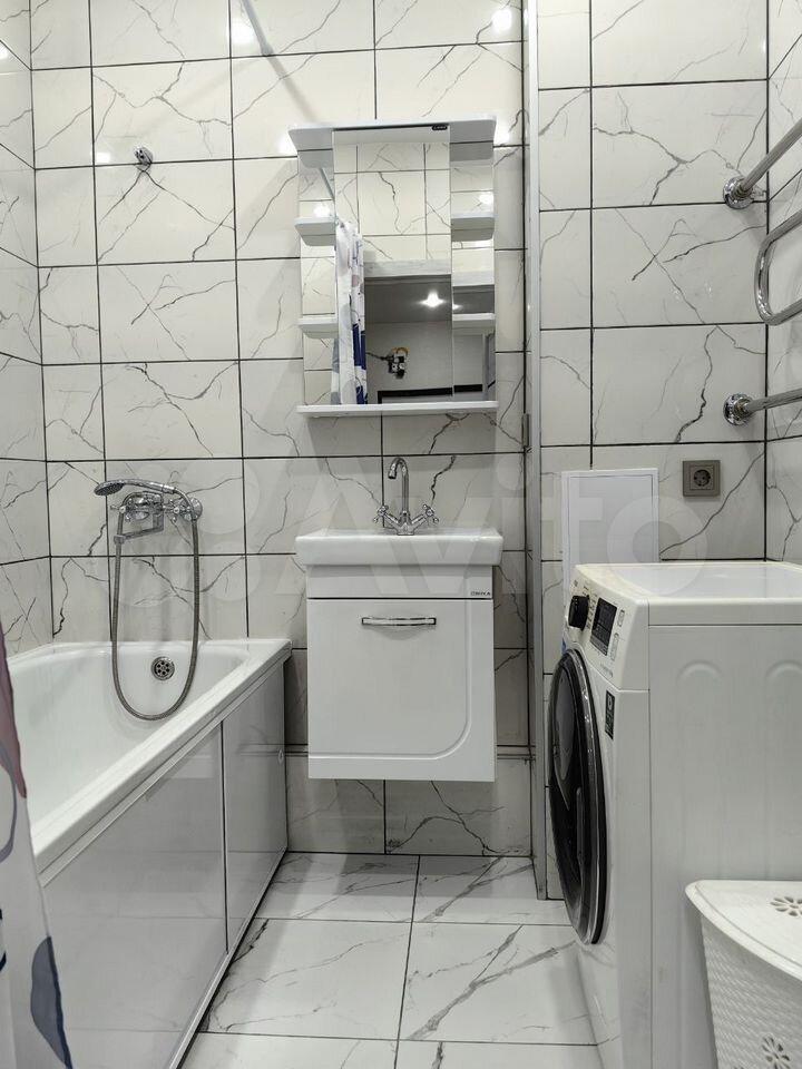 В ванной-душевая кабина,стиральная машина-автомат,мебель.