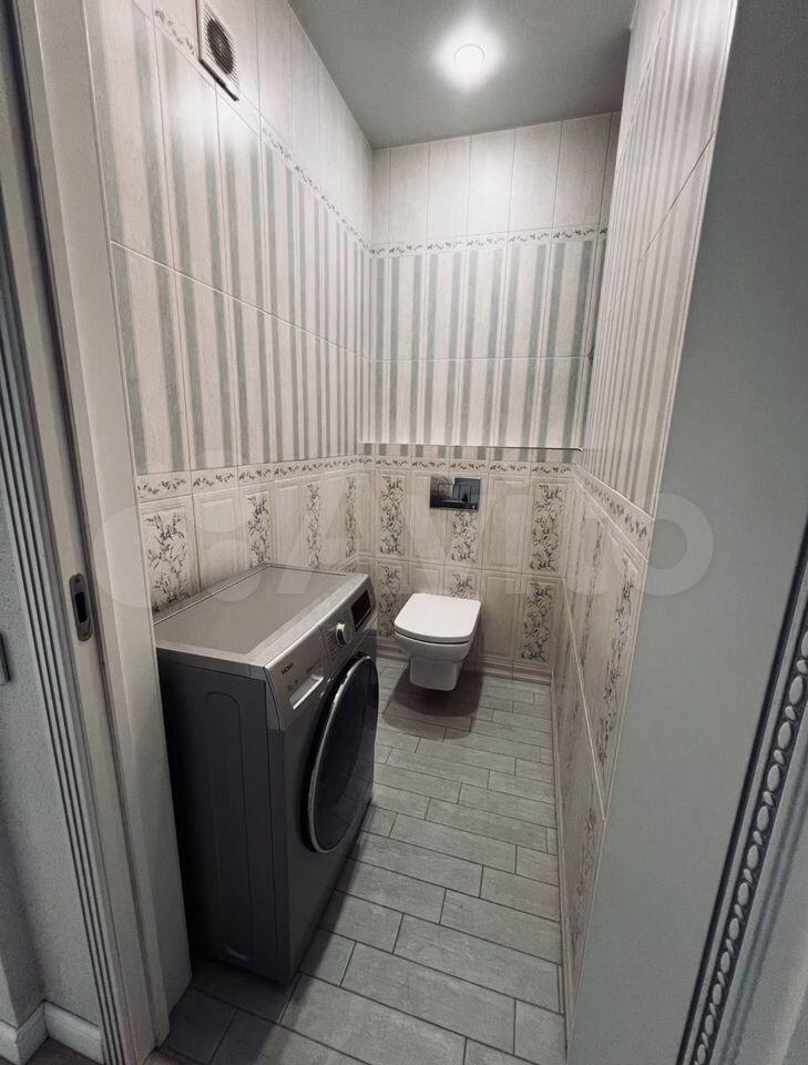 Санузел совмещенный, оснащён современной сантехникой и стиральной машиной. В прихожей предусмотрены удобные шкафы для хранения вещей.