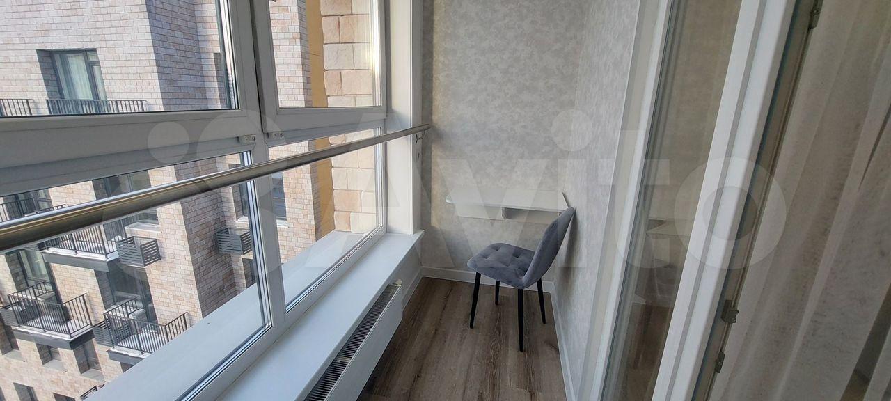 Панорамный балкон утеплён и имеет подогрев пола, что не только позволяет любоваться красотой заката над всем городом, но и использовать как рабочую зону или обеденную, например.