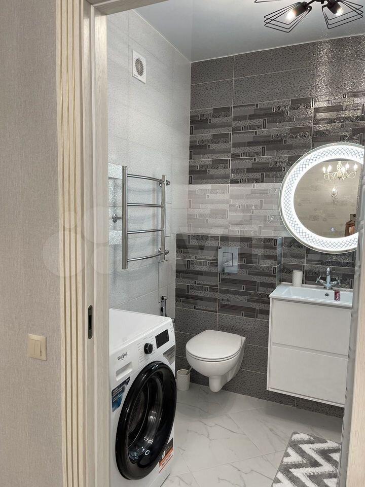 В ванной комнате совмещенный санузел с душевой кабиной и стиральной машиной. В прихожей предусмотрены вместительные шкафы для хранения вещей.