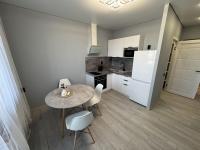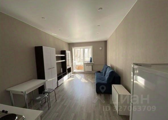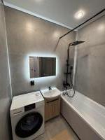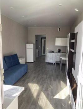 В квартире есть все необходимое для комфортного проживания. Просторная комната обставлена мебелью, на кухне установлен холодильник, а в ванной комнате — стиральная машина и ванна. Планировка студии позволяет удобно организовать пространство для отдыха и работы.