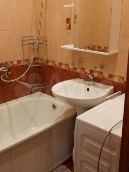 В квартире выполнен свежий евро ремонт. В гостиной установлен удобный диван и шкафы для хранения вещей. Санузел раздельный, оборудован современной сантехникой и стиральной машиной.