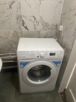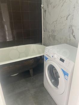 Ванная комната оснащена ванной и новой стиральной машиной. Особое удобство представляют окна в верхней части ванной и туалета и кухни, что позволяет пользоваться помещением без включения света и это очень экономит электроэнергию в квартире