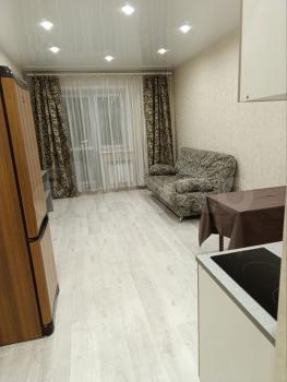 Сдается студия с хорошим ремонтом на 14 этаже. Есть всё необходимое для проживания. Рядом с домом 3 новых детских сада, новая современная школа, магазины, остановка общественного транспорта.