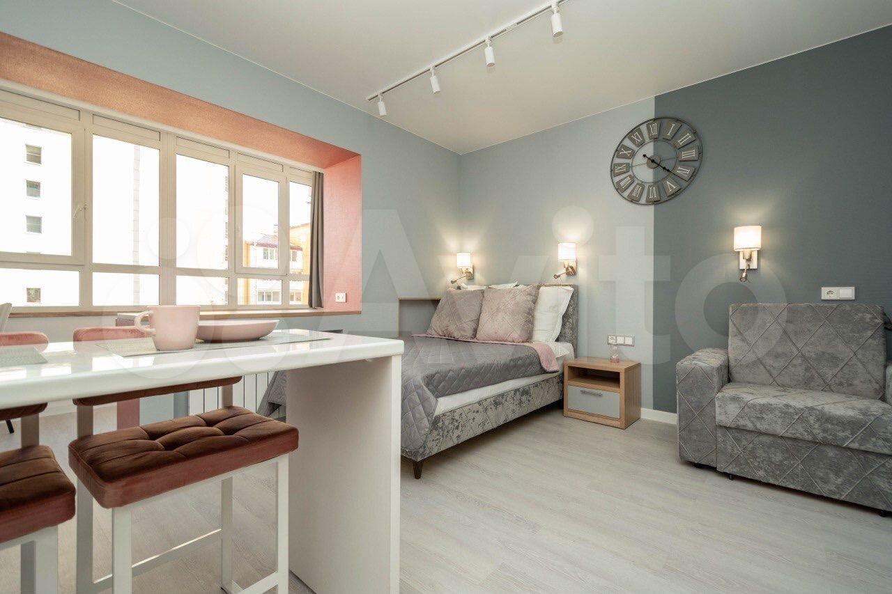 Уютная квартира студия, вид из окна на новый мост. Лоджия вид во двор. Солнечная сторона. В квартире все есть для проживания: техника, мебель, посуда. Развитая инфраструктура района: рядом больница, школа, дет сад, магазины, аптеки и кафе на первом этаже дома.