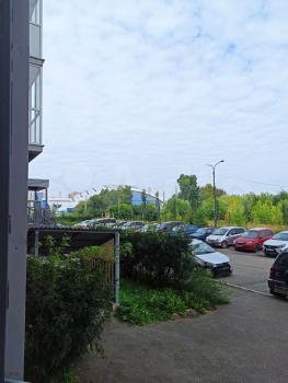 Тихий двор с просторной наземной парковкой, отдаленный от главной дороги.