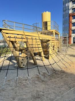 Благоустройство территории. Здесь расположены детские игровые площадки и спортивные зоны, а также гостевая автостоянка.