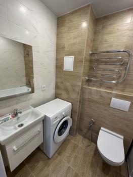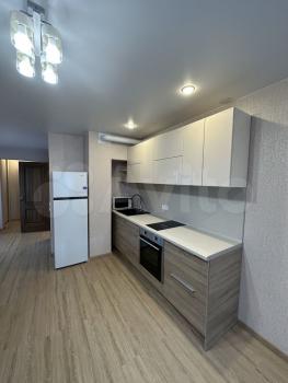 Квартира с дизайнерским евроремонтом, полностью готова к заселению. В комнате и на кухне есть вся необходимая мебель. Установлена современная техника: холодильник, стиральная машина и телевизор. Санузел совмещённый, оборудован ванной. Окна выходят на улицу, где ничто не мешает прекрасному виду на город и наполняет пространство естественным светом.