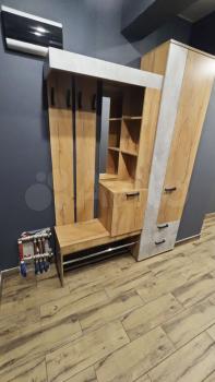 санузел - совмещённый, мебель - кухня, хранение одежды, спальные места, холодильник, плита, микроволновка, стиральная машина, телевизор.