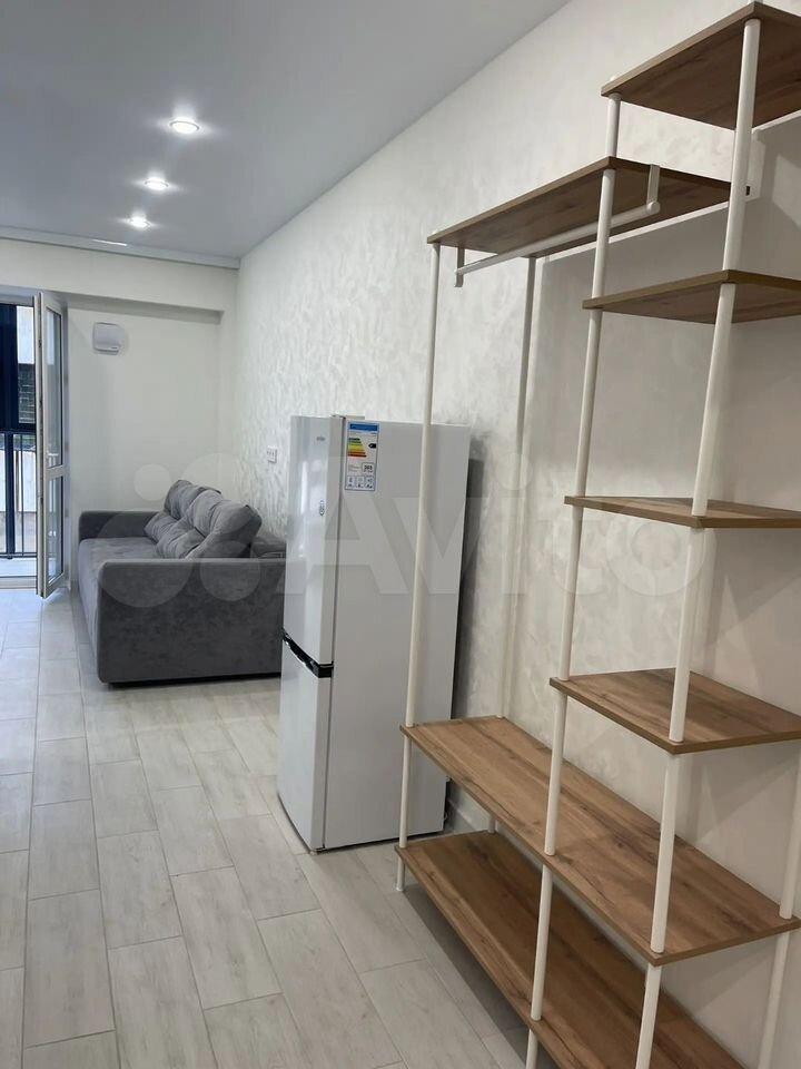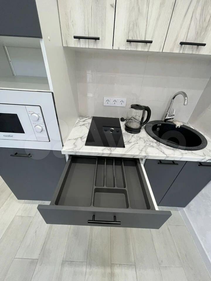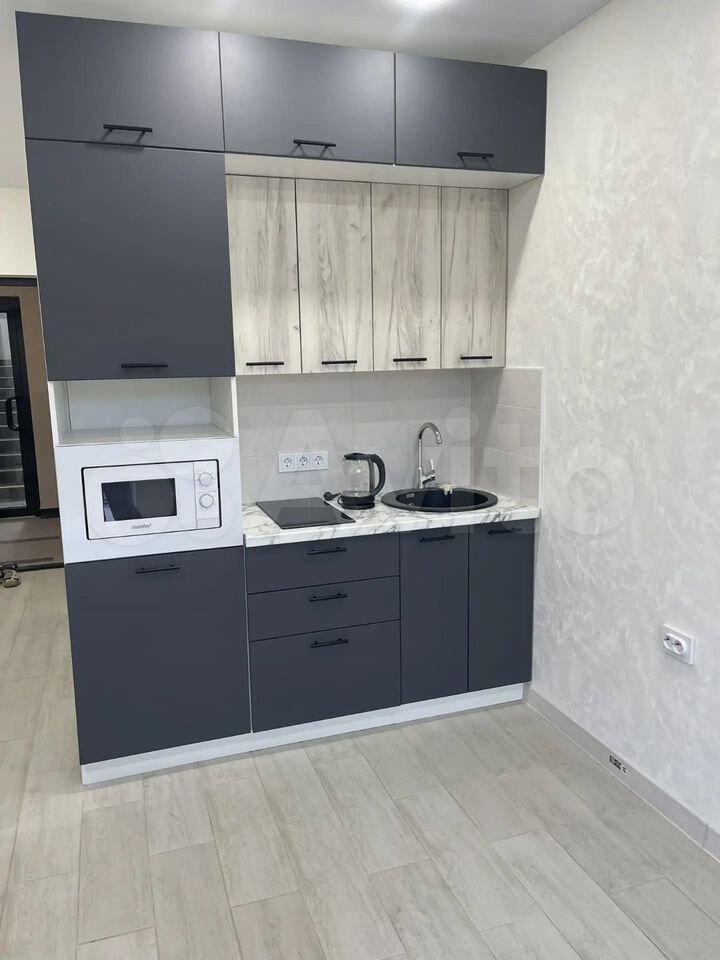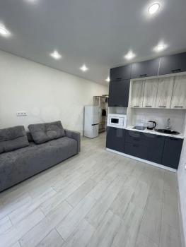 Сдается студия на длительный срок в монолитном доме 2016 года постройки. Находится на 15 этаже из 18, что обеспечивает отличный вид из окон. В квартире выполнен евро ремонт, полы покрыты ламинатом. Просторная кухня оснащена всей необходимой техникой, включая холодильник и микроволновку. В комнате установлен вместительный шкаф и диван, создающий комфортное пространство для отдыха.